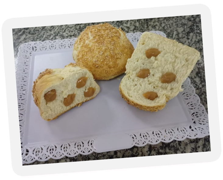 Preparado concentrado para elaboração de produtos panificados tipo pão de coco. Pode ser feito no formato forma tradicional, bisnaguinha, rosca de coco e outros. Pode ser feito recheado ou com cobertura.